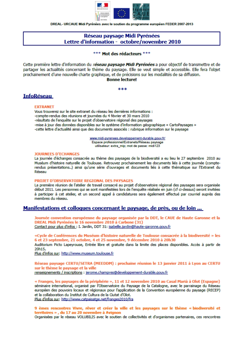 Cette première lettre d’information du réseau paysage Midi Pyrénées a pour objectif de transmettre et de