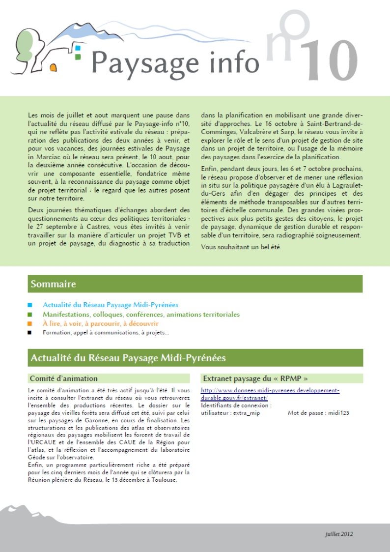 Les mois de juillet et aout marquent une pause dans l’actualité du réseau diffusé par le Paysage-info n°10,