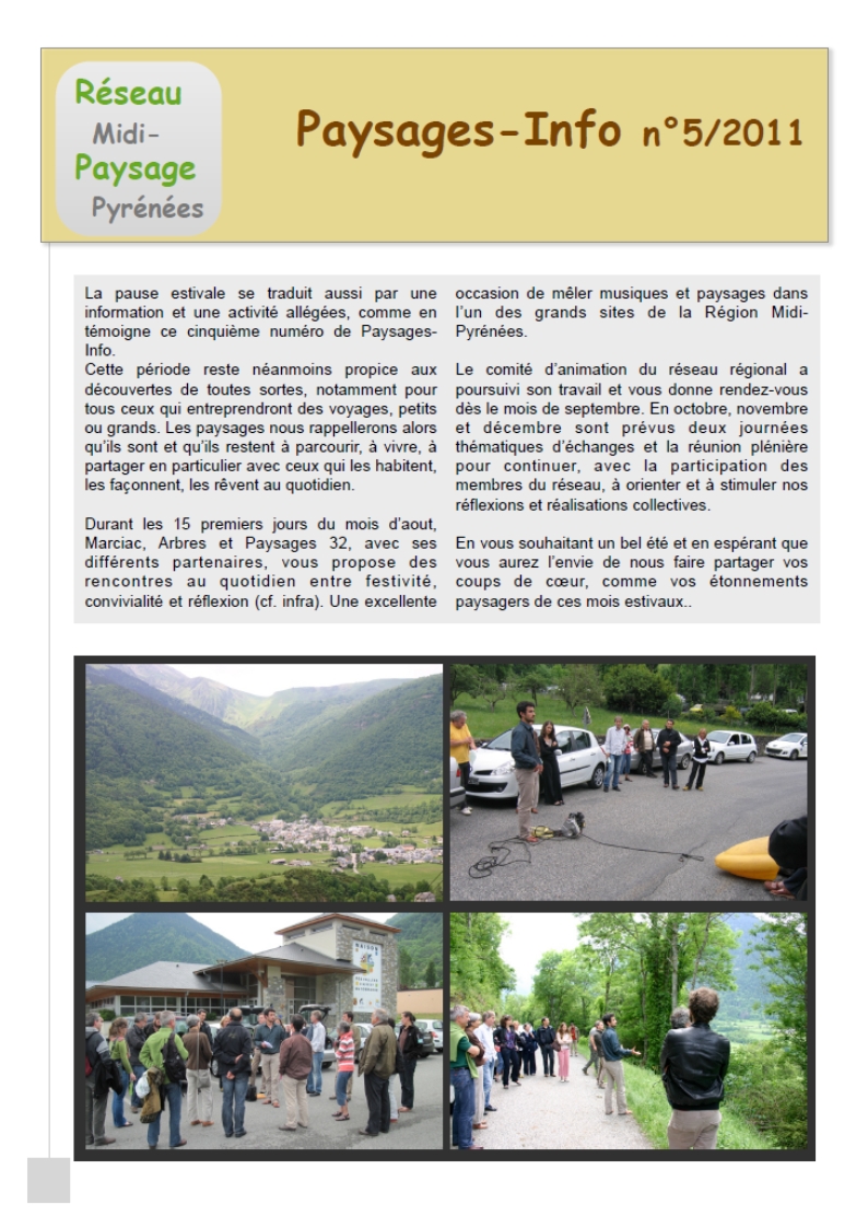 La pause estivale se traduit aussi par une information et une activité allégées, comme en témoigne ce cinquième numéro de Paysages-Info.